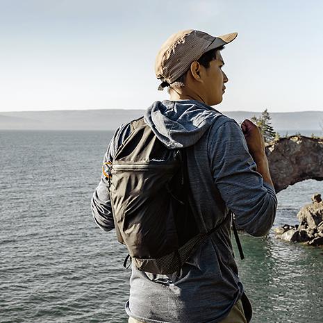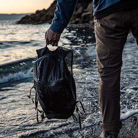 超軽量のUHMWPE強化Robicナイロンが優れた耐久性を発揮し、UTSコーティング、シールされた縫い目、シールされたジッパーが天候に左右されないデザインを実現しています。アルパイン対応の機能として、ギアループ、ツール用ショックコードキャプチャー、バックル式コンプレッションストラップを備えています。スターナムストラップと荷重分散型のショルダーストラップにより、機敏でバランスのとれたフィット感を実現します。付属のメッシュコンプレッションサックに収納して持ち運べます。