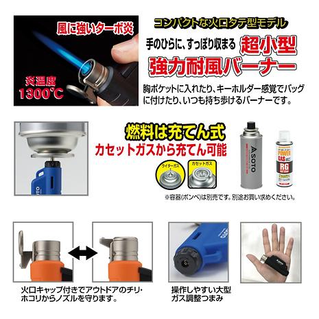 手のひらに、すっぽり収まる超小型強力耐風バーナー