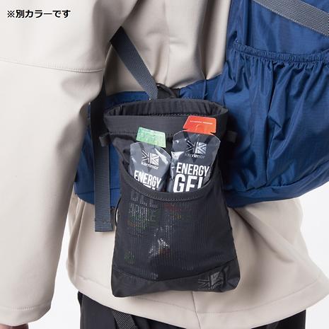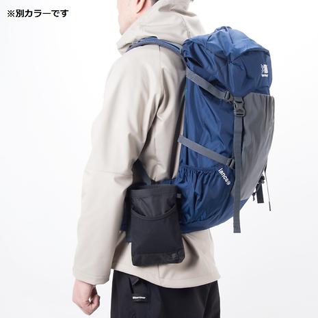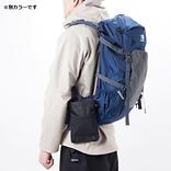 ヒップベルトに装着し、手が届きやすい位置で使うことのできるポーチ。500mlペットボトルや地図を携行するのに重宝。フックとイラスチックコードを使用して、ショルダーハーネスに固定も可能。