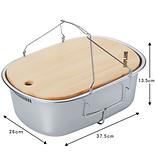 収納時にフタニなる天然木の板は、調理時にまな板として使えます。