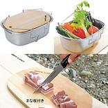 フィールドシンクがより使いやすくなりました。ハンドルがつき、食器や食材を入れたときに持ちやすくなりました。また収納するときはハンドルでフタ(まな板)がロックできるようになっています。直接火にかけられるので、お湯での洗い物を可能にします。