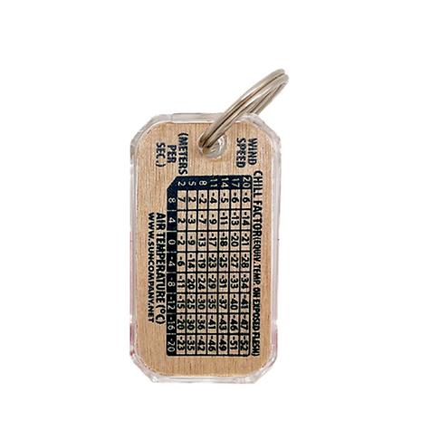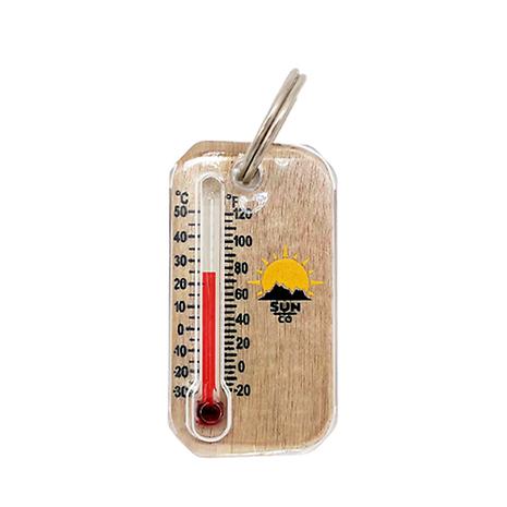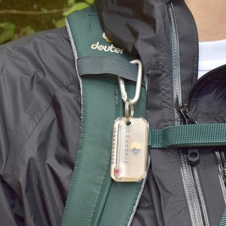 ジッパープルやキーホルダーとして使える温度計。裏面には体感温度表が付いています。