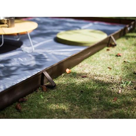 タープの下やシェルターの中などでグランドスタイルを実現できるリビングシート。ふちが10cm立ち上がっており、泥はねや土、水の侵入を防ぎます。足を伸ばして座ったり、横になったり、ゆったりとくつろぐことができます。シートの生地は汚れや水にも強いスペック。TM-385 リビングシート フロアマットとあわせて使うことでレジャーシート代わりに 多様なシーンで活躍します。