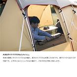 就寝用のインナールームは取り外しが可能で、外せば、大人数を収容できる大型シェルターに変身。グループキャンプなどで活躍します。インナールームは吊り下げ式なので、装着も簡単です。