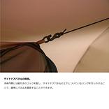 本体/75Dポリエステルタフタ・PUコーティング耐水圧1,800mmミニマム・UVカット加工・テフロン撥水加工、ルーフシート/75Dポリエステルタフタ・PUコーティング耐水圧1,800mmミニマム・UVカット加工・撥水加工、マッドスカート/210Dポリエステルオックス・PUコーティング、インナーウォール/68Dポリエステルタフタ、ボトム/210Dポリエステルオックス・PUコーティング耐水圧1,800mmミニマム、フレーム/A6061(φ16mm+φ14.5mm)
