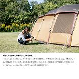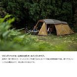 リビングスペースとベッドルームをレイアウトしたオールインワンスタイルの2ルームシェルターです。4本のアーチフレームとリッジポールを用いた、初心者の方も設営のしやすいシンプルな構造。年間を通じてキャンプを楽しんでいただける、エントリー向け2ルームシェルターの決定版です。