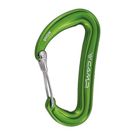 軽量で高強度のDyon はワイヤーゲートとキーロックのメリットを兼ね備えています。カーブしたビーム形状がオープンゲート11kN の高強度を発揮。スリムなノーズ形状はゲートとのスペースが最小限に抑えられ、安全性と操作性に優れます。