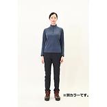 表面は保温性と吸湿性に優れたウール混、肌面は吸水・速乾性に優れ、肌離れがよいリサイクルポリエステルという二重構造によって、保温性と快適性を両立させたハイブリッド・ジップシャツです。より動きやすさを考えた裁断によって激しい上半身の動きでもストレスを軽減します。スタンドカラーとフロントのハーフジップは温度調節がしやすく、袖口は保温性の高いフィンガーホール仕様です。