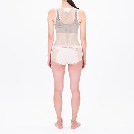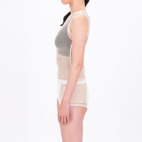 一年を通して発汗による"冷え"と不快感を軽減する、究極のドライ感を実現した次世代のアンダーウェア(肌着)。外気温の影響を受けにくいポリプロピレンをベースに、かさ高メッシュで編み上げることで肌面の汗を素早く吸収し、上位のベースレイヤーに拡散します。さらに汗を吸ったベースレイヤーはメッシュの厚みによって肌から遠ざけられ、肌面の冷えを防ぎ、ドライ感を保ちます。他の衣服とより組み合わせやすいノースリーブタイプ。