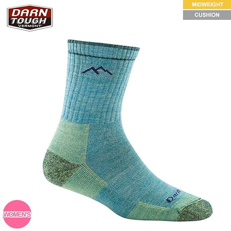 DARN TOUGH ダーンタフ ウィメンズ 1903 マイクロクルー ミッドウェイトクッションはメリノウールをDARN TOUGH VERMONTソックス独自のニッティング技術により密度の高く弾力性のあるループ編みにより高いクッション性で衝撃を吸収します。アンクル上部には、ずれにくいリビングを施し適切なフィットを実現。伸縮性のあるアーチサポートがあり、長時間・長期間のハイクにおいても快適に、そして耐久性はDarn Tough(驚く程タフ)です。アクティビティに対応しております。