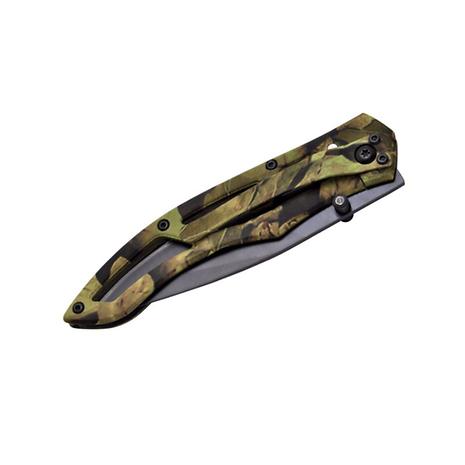 迷彩柄のハンドルは周囲の風景と完璧に融合し、黒い刃は光の反射を防ぎます。