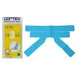 キネシオロジーテープと言われるものの1つで、伸縮性があるテープを皮膚に貼ることで筋肉の伸びやねじれを適度に制限し、ケガの防止、痛みの軽減、疲労回復の効果が期待できます。