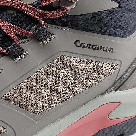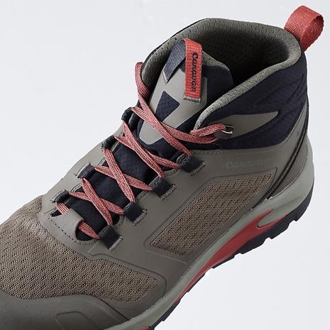 アウトドアシューズに求められる高機能性はそのままに、さらに軽さを追求したキャラバンシューズを代表するハイキングエントリーに最適な、ミドルカットシューズです。通気性に優れたポリエステルメッシュ素材にTPU樹脂補強を施し、アッパー全体の成形と耐久性を高めると同時に、擦れ等によるステッチ切れを防ぎます。つま先とかかとには軽量で衝撃吸収に優れる発泡TPU樹脂補強を施すことで、耐摩耗性と安全性を両立。トゥガードにより石や木の根にぶつけても、つま先をしっかりと守ります。