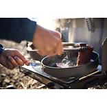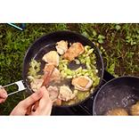 ハンドルが本体底部に折りたためるようになり、サイズが従来のモデルより大きくなります。内側にセラミックコーティングを施しているので調理とお手入れがしやすく、キャンプ等のアクティビティで便利に使用できます。
