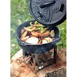 側面の4枚のパネル、及び火床のトレイには通気を良くする穴が開いており、これが煙突効果を高めて小さな炎でも効率よく火力を生み出します。
