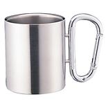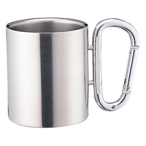 取っ手がカラビナになったユニークなカップ。ザックなどに直接取り付け出来ます。
