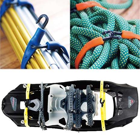 アイディア次第で無限の使い方が出来るフック付きの固定用ストラップ。ベルトの穴にフックを引っ掛けることで固定できます。独自に開発されたシリコン製のストラップベルトは、UV耐性と防水性があります。また、気温によって硬化しにくい素材で、約2倍まで引き伸ばすことが可能です。自在に回転するフックはプラスチック素材でストラップやギアを傷つけることがありません。12インチサイズは、スノーシューやマットレスをまとめるのに便利です。