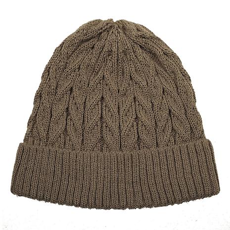 平面的なパーツを縫い合わせて生産される従来のニットウェアとは異なり、ホールガーメントは立体的に編み上げられるため、 無理な突っ張りもなく、頭部をゆったりと包み込みます。また、一点ずつ丸ごと生産されるため、原料の無駄がありません。立体的に編み上げるため、縫い目がないのが特徴。ケーブル編みの柔らかな風合い。