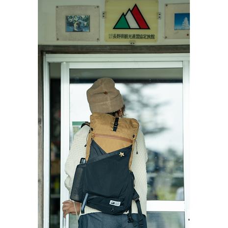 素材は高強度のポリエステル繊維を菱形に織り込み、耐久性、耐磨耗性、防水性に優れたX-Pac(R)を使用。