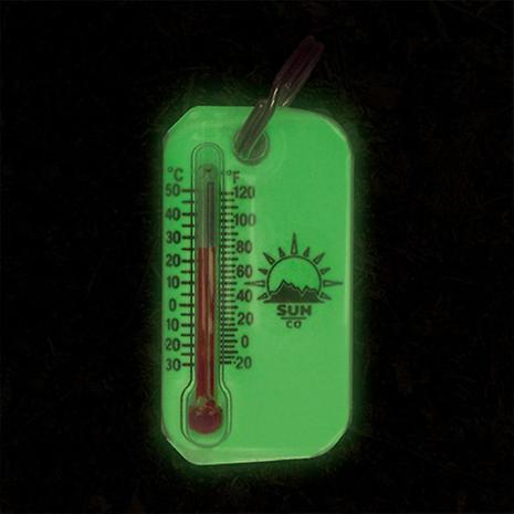 ジッパータブやキーホルダーとして使える温度計。裏面には体感温度表が付いています。