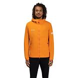 無駄な余りの出ない,すっきりシルエットで仕上げたフーデッドジャケット。幅広い体型にマッチするレギュラーフィットパターンです。全体をミニマルにし,胸もとと左袖のロゴプリントをアクセントにしました。面持ちをシャープに引き立てる高めのネックは,風の侵入を遮ります。フードはドローコードで,袖口はベルクロテープで調節が可能です。セキュリティ面も安心のファスナーポケット付き。ハイキングからタウンユースまで,さまざまなシーンで活躍します。