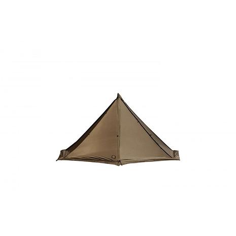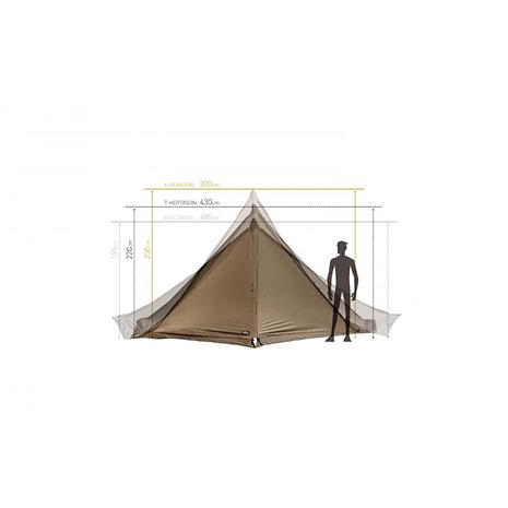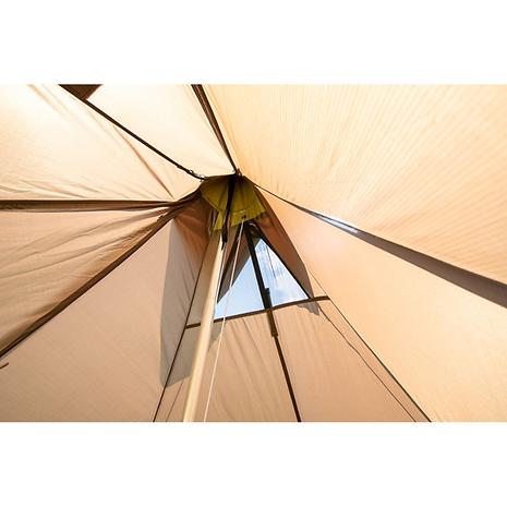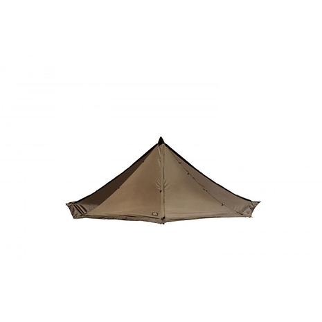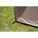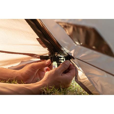 メインポールの伸縮と両サイドのファスナー開閉で、六角形から八角形まで様々な張り方ができる全く新しいモノポールテント。