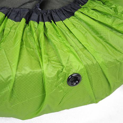 カバ-内部に溜まった水の排出用に、底の部分には大きめのプラスチック製グロメットを装備しています。