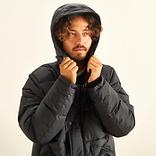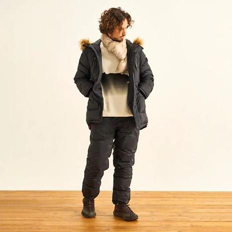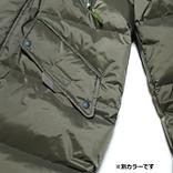フード周りのドローコード、袖口にはリブを設けることで冷気の侵入を防ぎ、保温性を保ちます。さらに、フロントは止水ファスナーとフラップを設けることで防水性を高めています。腰元のポケットには外側ダウンが入り、また内側には、起毛素材 (ソーラーセンサー)を採用しており、保温力が高い仕様に。