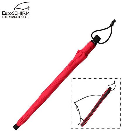 EuroSCHIRM ユーロシルム スイング ライトフレックス アンブレラはその驚くような軽量性にもかかわらず、非常に耐久性があり、ちょっとの強風ではへこたれません。親骨の中心部から放射状に取り付けらたアームが強風を受けた際に渦巻き状にフレックスにしなる事で風圧を上手く逃がす構造になっています。とても軽量なのでトレッキングの際にバックパックのサイドポケットに入れていても重量は気になりません。ナイロンケースは雨が止んだら肩に掛けて背負うことができます。