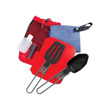 シンプルで軽量なキッチンセットです。快適に調理するための最小限のキッチンアクセサリーをメッシュポケットが付いたスタッフサックにまとめました。
