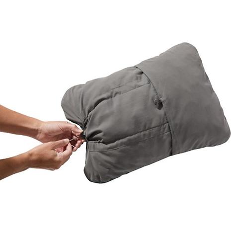 柔らかすぎず、硬すぎないこの枕は、マットレス製造時に出るフォームの切れ端を再利用して作っている環境にやさしい枕です。使わない時は丸めてラグビーボールのように収納できるので、どこでも気軽に持ち運べます。裏側にあるドローコードを絞ることで硬さと高さを変更することができ、自分にあった快適な枕に調整することが可能です。
