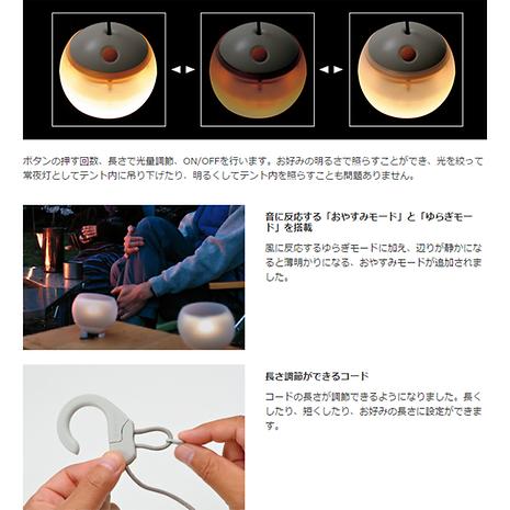 充電バッテリー対応の新しいほおずきには、さらに自然を身近に感じる事ができるように、 おやすみモードが追加され、静かに星空や焚火を眺める時、それに呼応するように、ゆっくりと光を小さくしてくれます。