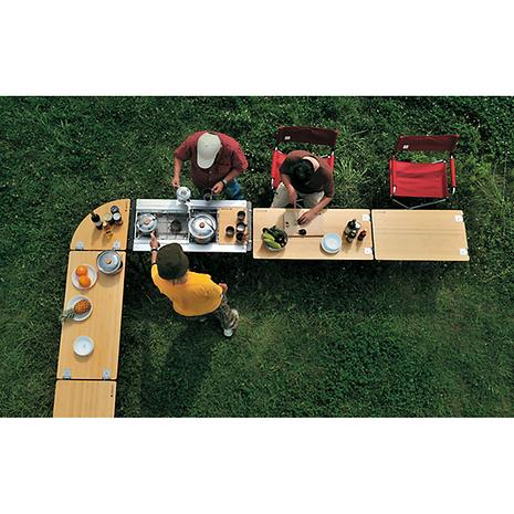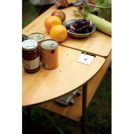 アイアングリルテーブルの左用拡張テーブル。テーブル同士を無限に連結可能です。セットするには脚が必要です。天板の素材は美しい竹集成材を採用しています。見た目にも優しい寛ぎの場を提供いたします。