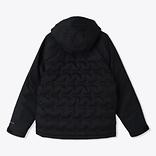 ダウンの偏りを防ぐために、縫製ではなく圧着によるバッフル構造を採用することで、ジャケット全体のコールドスポットを無くし保温効果を高めるとともにデザインのポイントにもなっています。フード後部と袖口には、フィット感を調整できる面ファスナーを配置し、冷気の侵入をシャットアウト。