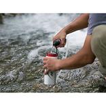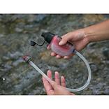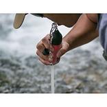 わずか142g と軽量、コンパクトでろ過能力も高い浄水器です。フィルターを覆う本体はポンプになっていて、握り込むだけで浄水可能。浄水しながら直接飲むことができるので、小さな水たまりからも水が得られます。もちろんボトルへの注水も可能。中空糸膜のフィルターは1分間に約1L の浄水能力があり、フィルターの寿命は約2,000L。NSFプロトコルP231のバクテリアと原生動物を取り除く基準をクリア。現場でのセルフクリーニングが可能です。