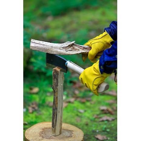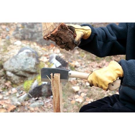 新潟の名峰、守門岳から命名された両刃の薪割り用鉈。刃に厚み、自重があるので振り下ろすだけで容易にまっすぐ薪を割ることができます。火造り鍛造の鋼付き構造のため、刃の研ぎ直しや刃付けなどのメンテナンスが容易にでき、手入れしながら長く使えます。北関東で育った硬い樫を用いた柄は、長めに設計され、両手で持つことも。すべての作業が新潟県三条市の職人の手で行われているので、修理をしながら長く使用できます。専用革ケースつき。