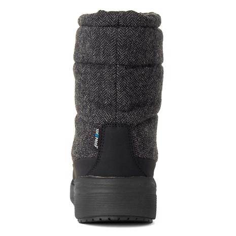 定番のヌプシブーティを女性用の足型でシャープなルックスにデザインした、ウィンターブーティです。テックプルーフ防水メンブレンをインサートしたアッパーには、はっ水加工を施したリサイクルポリエステルを採用。中わたは、濡れによる機能低下が生じにくいサーモライトエコメイドを封入しています。使い勝手が良いベーシックな長さで、落ち着いたカラーリングと美しいトゥシェイプがスタイリングの幅を広げます。