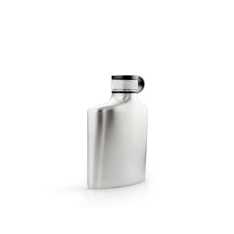 非常に美しく、手にもポケットにもフィットする丸みを帯びたステンレス製のフラスコです。