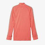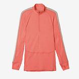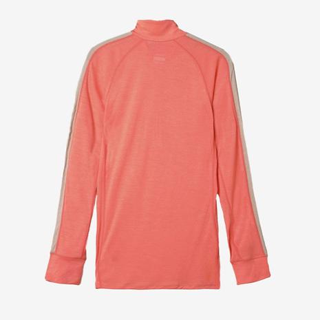 熱がこもりやすい背中や両サイド、脇下、タックインしたときにムレやすいお腹まわりは、さらなる通気性をもたらすため同素材のアイレットメッシュ構造に。フィット感のあるスリムシルエットのベースレイヤーで、衣服内換気がしやすいハーフジップタイプ。袖口は、手の甲まで覆えるサムループ仕様。夏のトレッキングやランニングなどのアウトドアシーンにおすすめです。