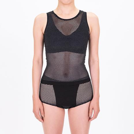 一年を通して発汗による"冷え"と不快感を軽減する、究極のドライ感を実現した次世代のアンダーウェア(肌着)。外気温の影響を受けにくいポリプロピレンをベースに、かさ高メッシュで編み上げることで肌面の汗を素早く吸収し、上位のベースレイヤーに拡散します。さらに汗を吸ったベースレイヤーはメッシュの厚みによって肌から遠ざけられ、肌面の冷えを防ぎ、ドライ感を保ちます。他の衣服とより組み合わせやすいノースリーブタイプ。