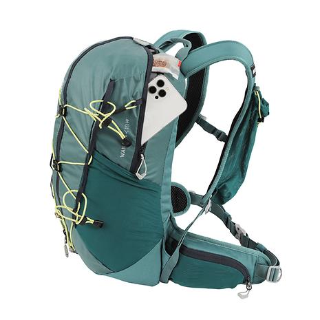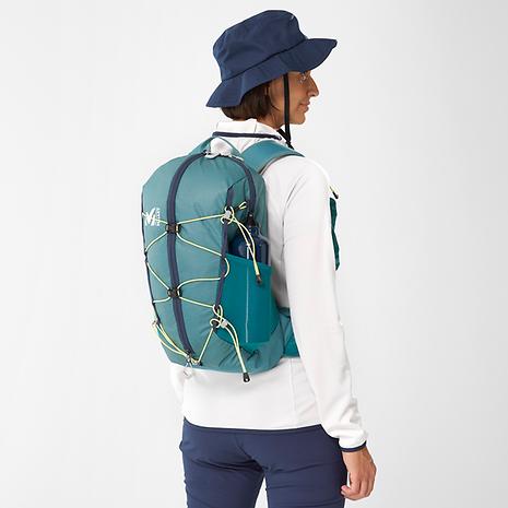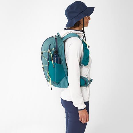 低山の山小屋泊山行からミニマルなファストパッキングといった軽量装備での軽快なハイク&ランに最適、高い機動力と機能性を兼ね備えた軽量バックパックです。ミニマルでクリーンな外観のボディには軽量かつ高耐久な100デニールのダイアモンドロビックナイロンを採用。高い通気性と安定した背負い心地を実現した背面システムは、暖かい時期のアクティブな旅での快適性を提供します。フロントジッパーによって容易にアクセスできるメイン収納はパッキングや出し入れも楽々。サイドには便利なメッシュストレッチポケット、外側にはデイジーチェーンとバックル留めのバンジーコードによってシンプルながら汎用性の高い収納を実現しています。この女性向けモデルでは女性の体型に合わせて背面長やストラップの形状などを調整しています。18リットルは日帰り山行に最適なサイズ。ハイキングはもちろん、ファストパッキングやヴィアフェラータ、サイクリングなど軽快さを楽しむ多様なアクティビティに対応します。