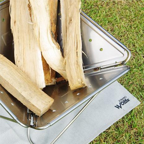大型焚火台の使用を想定した690×600mmのラージサイズ。小型焚火台使用の場合は周囲をより広くカバーできます。収納時本体は約205×225×15mmまで小さく折り畳みが可能。余計なスペースを必要としません。