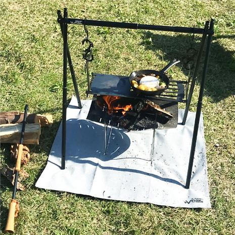 ふとしたときに焚火台から地面へ薪や炭が崩れ落ちたり、隙間から灰と一緒にこぼれ落ちていませんか。焚火シートを焚火台やグリル下に敷くことで、キャンプサイトの芝生、地面へのダメージを最小限に抑えます。