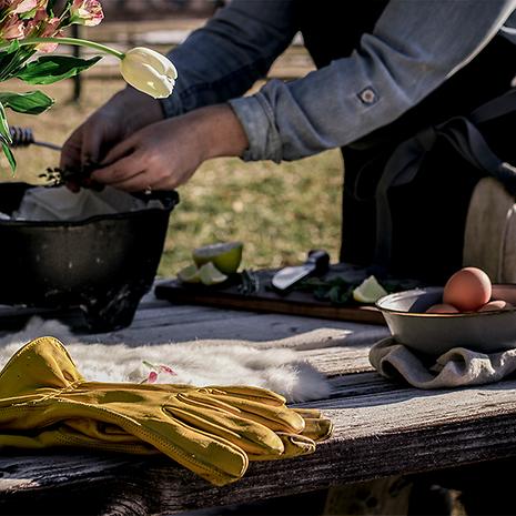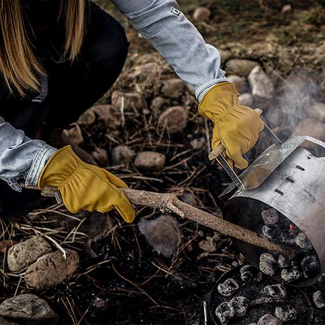 Barebones ベアボーンズ クラシックワークグローブはとげのある植物、荒れた土壌、乾いた樹皮などの作業時に役立つ、クラシックな作業用手袋です。園芸用ですが、焚火、オープンファイヤー調理などにも使用できるフルグレイン牛革を使ったレザーグローブです。。