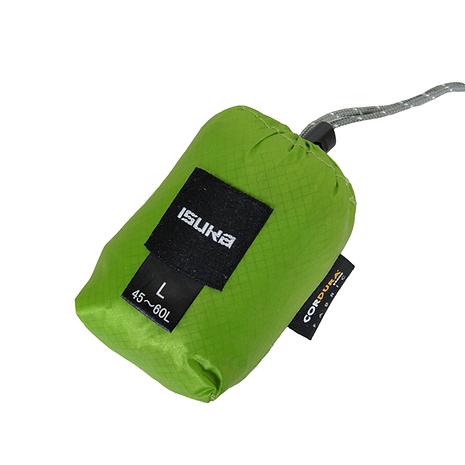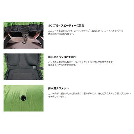 引き裂き強度に優れ、超軽量・コンパクトな30Dのシリコナイズド・コーデュラを使用したレインカバーです。上部のコードストッパーで締め加減の調節が可能で、背面のストラップでバッグにしっかりと固定できます。底部分には水抜き用に大きめのプラスチック製グロメットを装備しています。