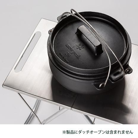 天板はオールステンレスで、圧倒的に熱に強く、頑丈で、アツアツの料理が入ったダッチオーブンを置くことも可能です。