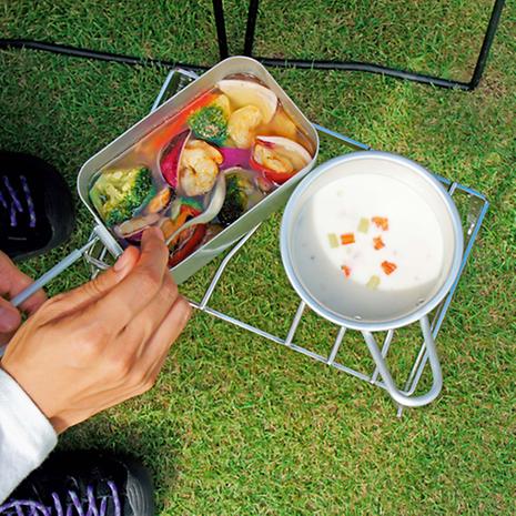 脚部の高さを調節して、お好みの位置で固定することができます。また脚部をしっかり閉じれば鍋敷きとしても。