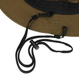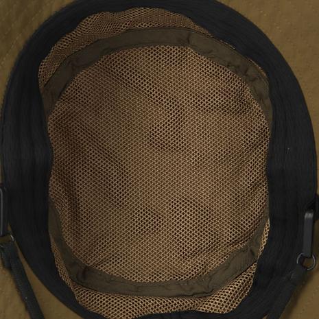 撥水加工を施したバケットハット。吸水速乾機能を持った汗帯テープ付き。Marmotロゴはシリコンプリント仕様。コードは取り外し可能。背面アジャスターでサイズを調整可能。