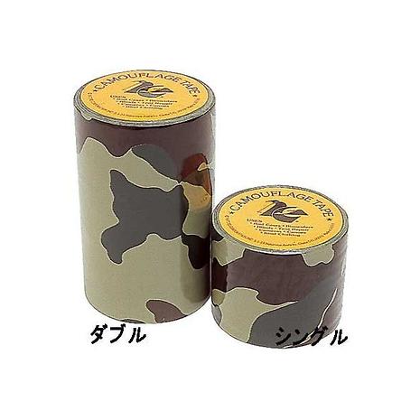 CAMOUFLAGE TAPE カモフラージュテープはロッドケースやカメラの三脚、カヌーの迷彩用として、テント衣類の補修用としてどこにも貼れて、はがせる多目的テープです。シングルは5cm、ダブルは10cmの幅広で目的に応じて幅を選べます。