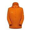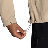 無駄な余りの出ない,すっきりシルエットで仕上げたフーデッドジャケット。幅広い体型にマッチするレギュラーフィットパターンです。全体をミニマルにし,胸もとと左袖のロゴプリントをアクセントにしました。面持ちをシャープに引き立てる高めのネックは,風の侵入を遮ります。フードはドローコードで,袖口はベルクロテープで調節が可能です。セキュリティ面も安心のファスナーポケット付き。ハイキングからタウンユースまで,さまざまなシーンで活躍します。